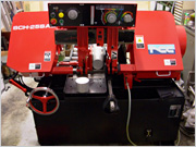 - 帯状ののこ刃を横方向に回転させ、材料を切断する機械。厚い板材や鋼材などの切断に使用。