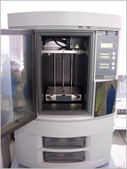 - ABS樹脂材料を溶融ヒータで溶かし、造型ヘッドを前後左右に動かし材料を射出し、造形台を縦方向に下げながら積層することにより、モデル化する機械。